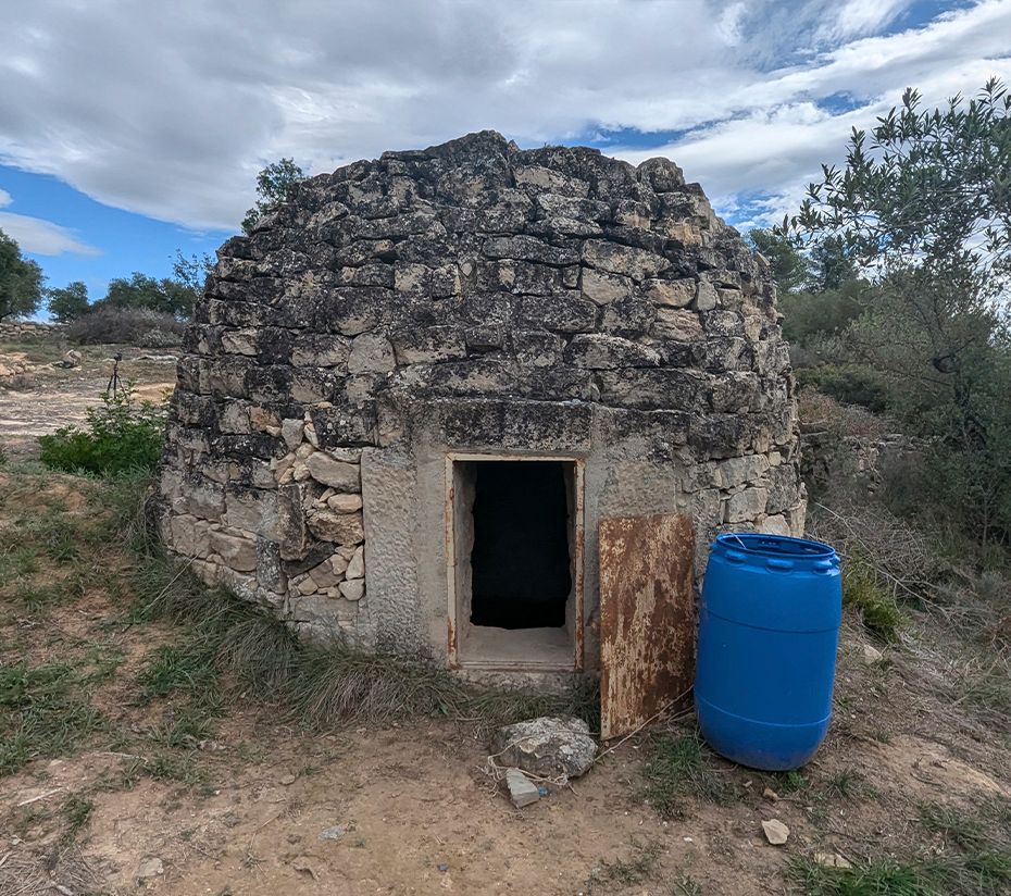 La coberta, construïda amb la tècnica de la pedra seca i resolta amb una falsa cúpula i eliminació d’angles, aporta solidesa i equilibri a l’estructura. Una petita obertura amb llinda i muntants ben escairats permetia extreure l’aigua amb una galleda i una soga.