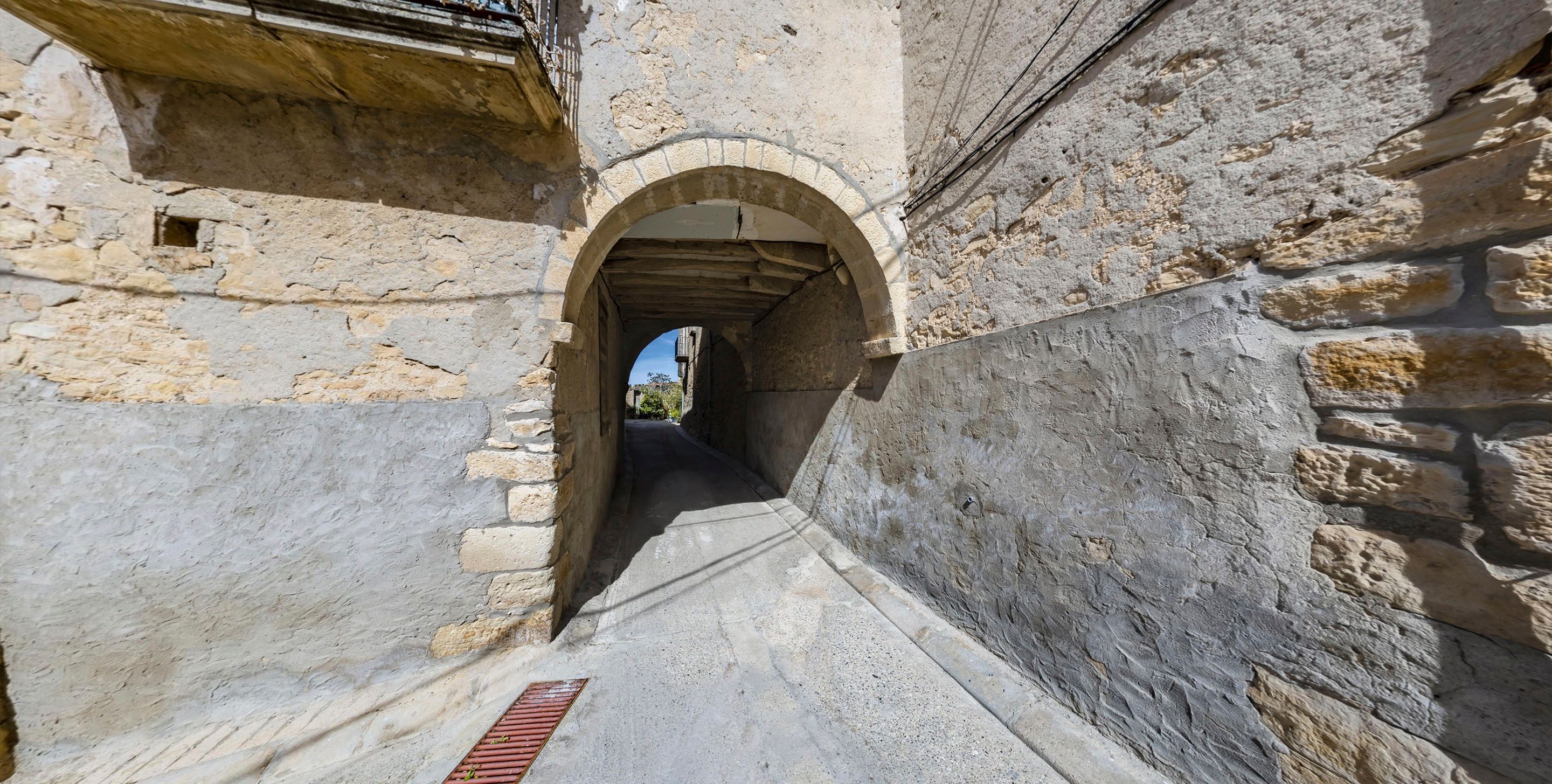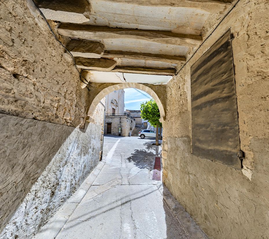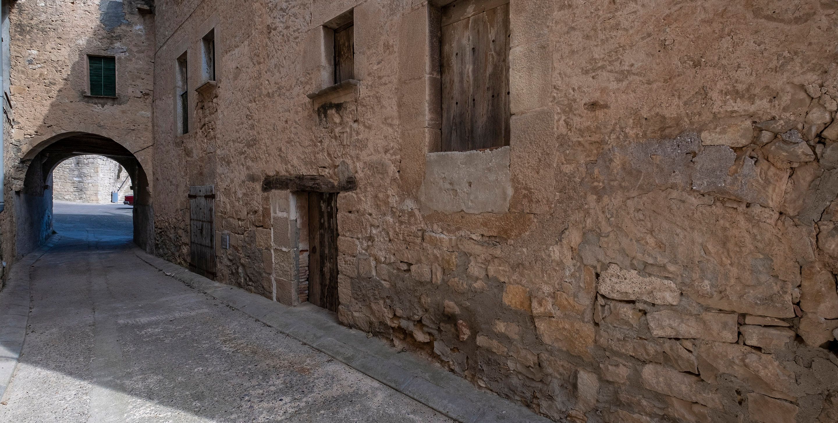 En travessar-lo, el carrer es tanca en un petit cul-de-sac, un espai íntim i recollit envoltat de cases amb portes i finestres de pedra ben treballada. Aquest conjunt manté l’essència de l’arquitectura tradicional i transporta el visitant a temps passats, quan el poble presentava un traçat més reduït i protegit. Avui, el pas cobert de la plaça de l’Església continua sent un element singular, capaç de suggerir la vida i l’ambient dels segles anteriors.