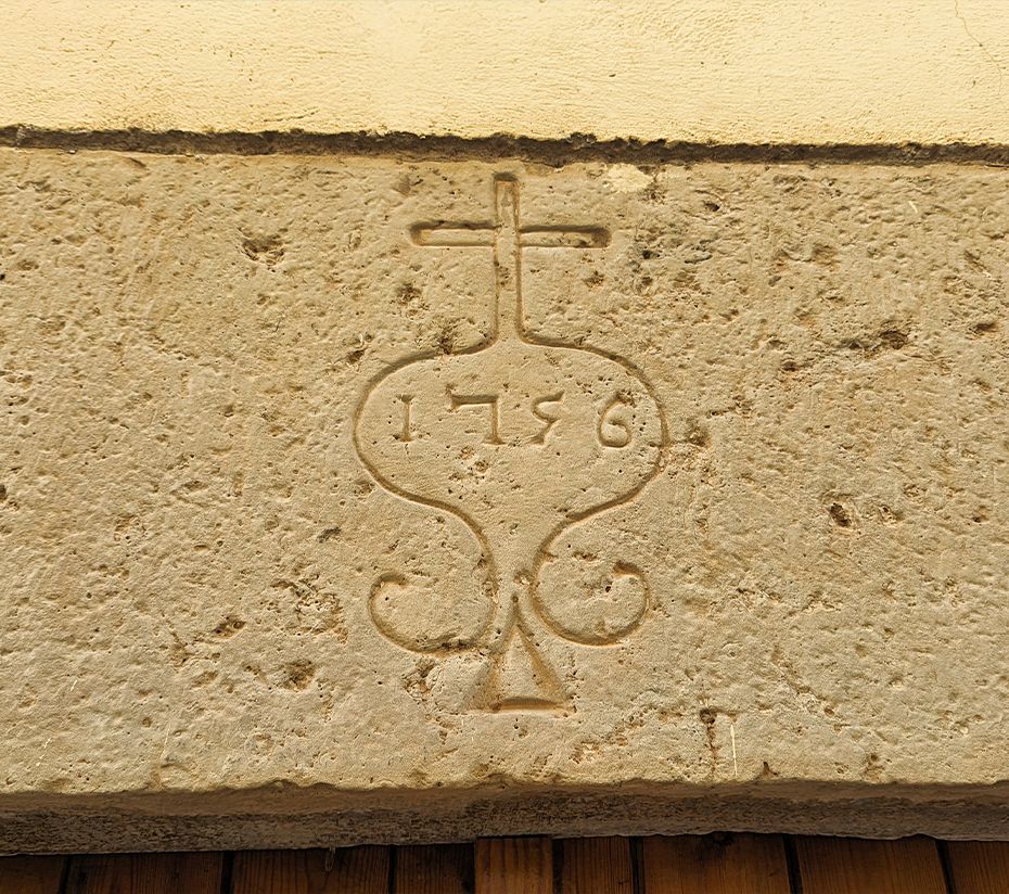 Una de les peces més destacades és la llinda que representa l’ofici de picapedrer, on apareixen eines com martells, plomades, esquadres i maces, juntament amb la data de 1771. Aquest detall escultòric és un testimoni excepcional dels oficis tradicionals als Omellons i recorda la importància de les pedreres que, històricament, han format part del terme municipal i han marcat la identitat arquitectònica del poble.