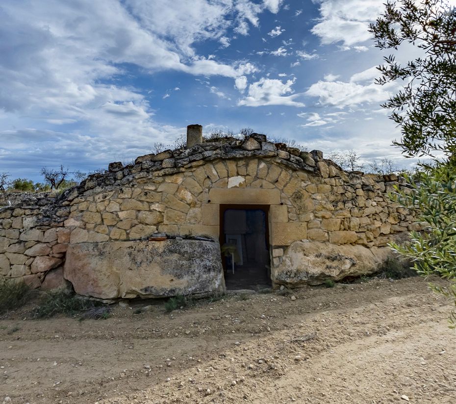 Construïda aprofitant el pendent natural del terreny i una estructura rocosa com a part dels fonaments, la cabana mostra una clara adaptació a l’orografia. La tècnica de pedra seca amb blocs disposats en filades horitzontals, juntament amb els contraforts laterals, reforça l’estabilitat de l’edificació.
