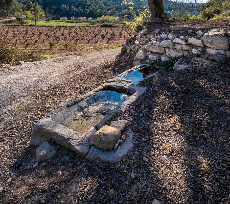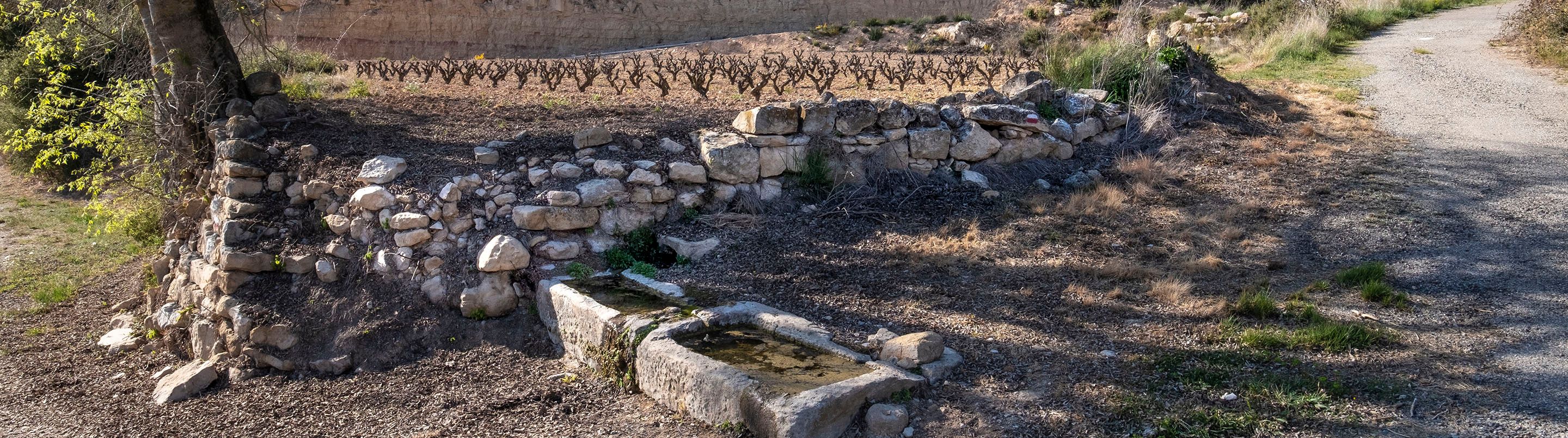 A l’altra banda del camí hi ha una bassa artificial que recollia l’aigua sobrant i s’utilitzava per omplir les màquines d’ensulfatar les vinyes. Popularment, s’atribueixen a la seva aigua propietats beneficioses per a la pell.