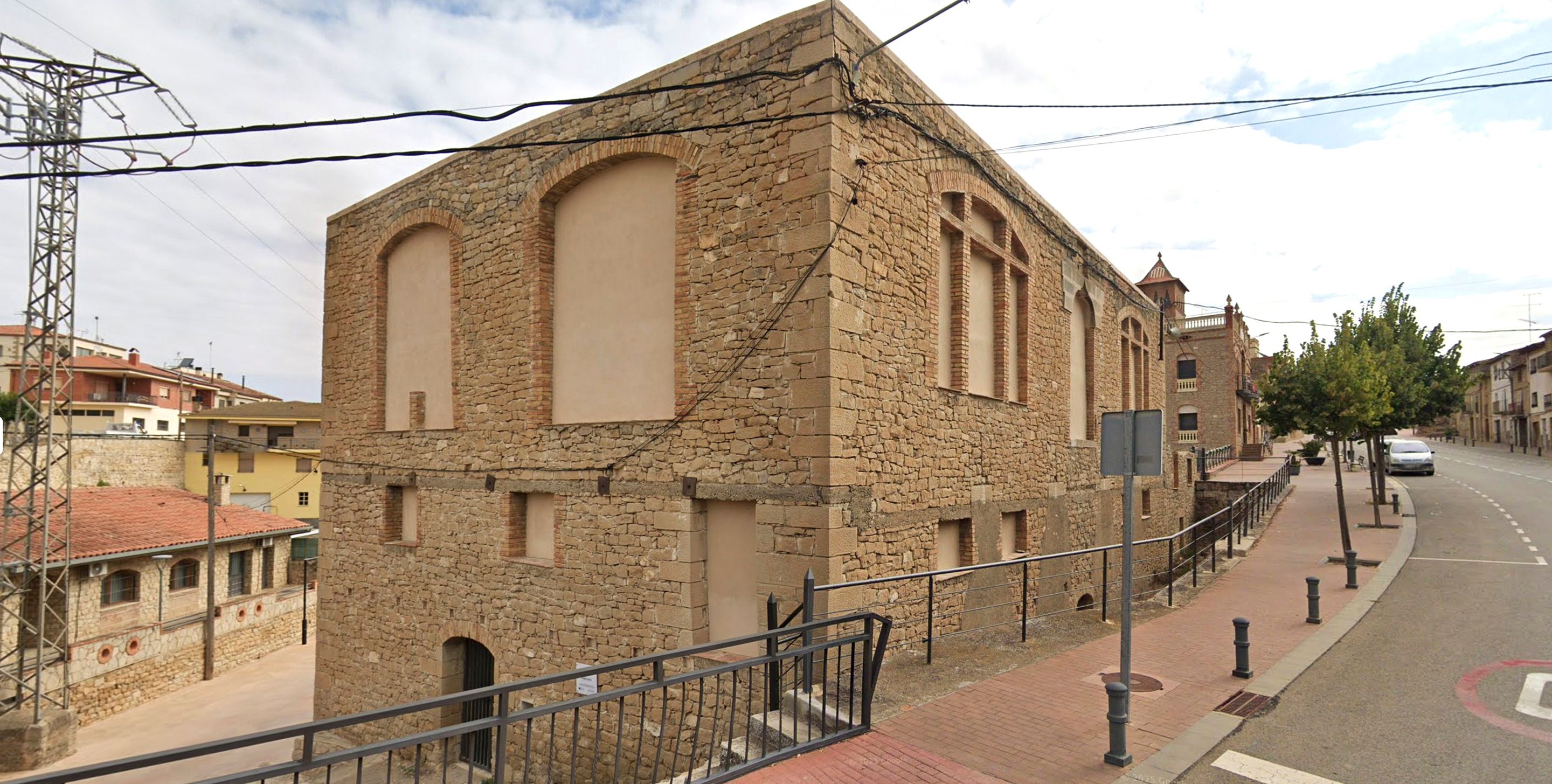 La façana principal, orientada a la carretera de Tarragona, destaca per l’arc conopial d’accés i els grans finestrals laterals. La façana est conserva una gran arcada de maó i pedra que donava entrada a la sala, reforçant el caràcter monumental de l’edifici.