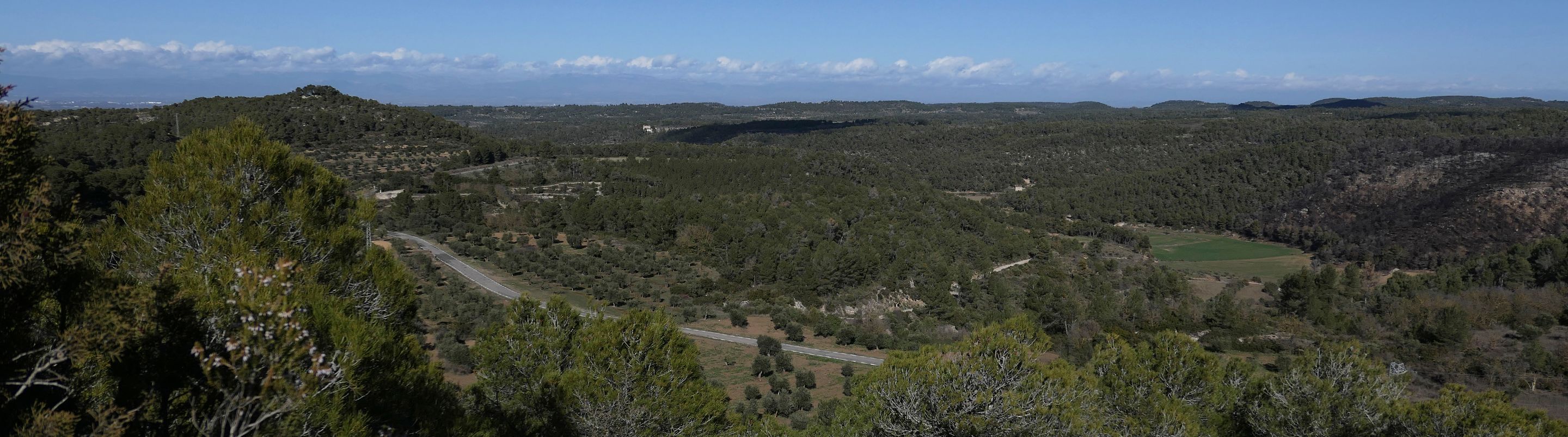 Des d’aquest indret s’obté una panoràmica espectacular del vessant sud dels Pirineus. En dies clars es poden distingir cims emblemàtics com el Puigmal, el Monte Perdido, la Pica d’Estats o l’Aneto, que emergeixen a l’horitzó darrere la serra d’Aubenç, configurant un teló de fons imponent.