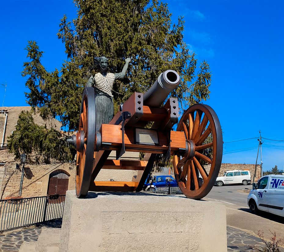 L’escultura, obra de l’artista montblanquí Josep Agustí i Feliu, mostra la heroïna al costat d’un canó, símbol de la seva participació als setges de Saragossa durant la Guerra del Francès. Està situada a l’entrada del poble, a l’avinguda que porta el seu nom, i s’acompanya d’un canó històric cedit com a record. Ben conservat i fàcilment accessible, el monument és un símbol d’identitat i memòria col·lectiva per als veïns de Fulleda.