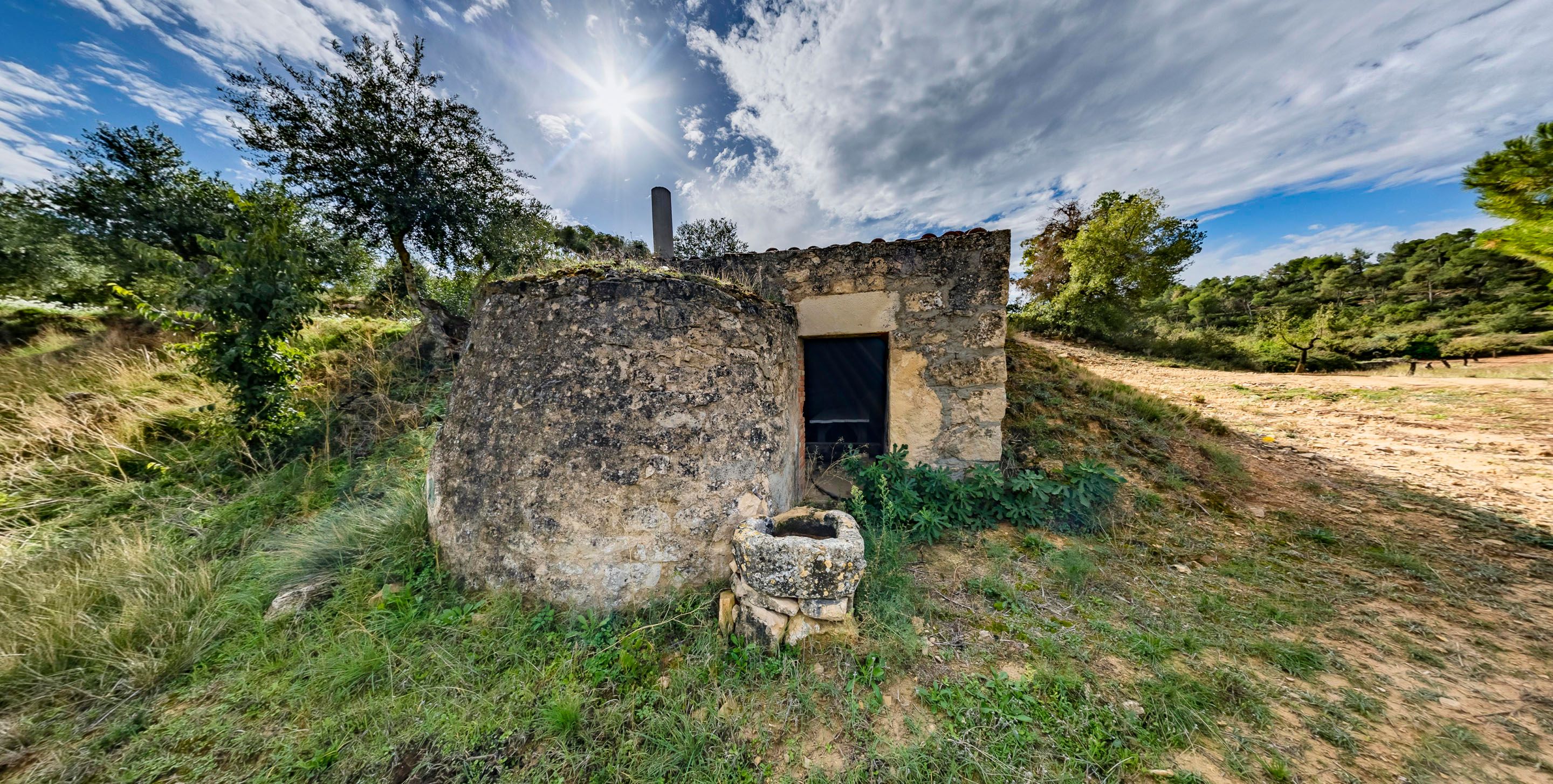 Les cabanes de volta són les més característiques i servien per aixoplugar pagesos i animals durant les feines al camp. A la vegada, la necessitat d’aigua va impulsar la construcció de basses, cisternes i aljubs, sovint excavats a la roca o bastits amb pedra seca.